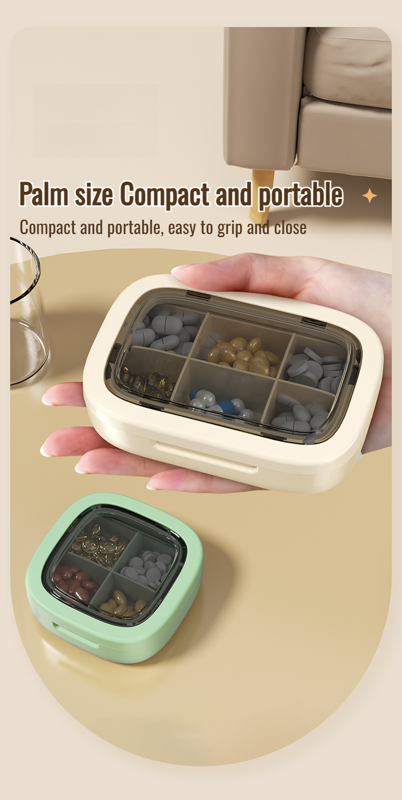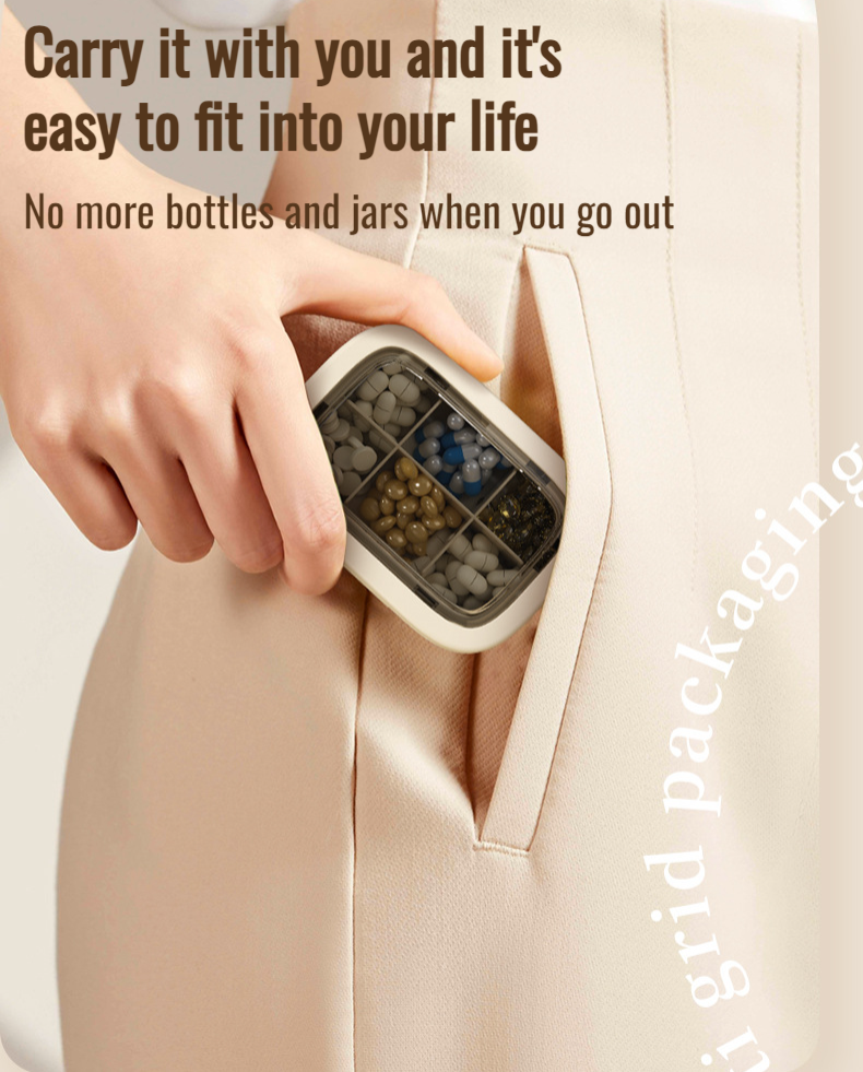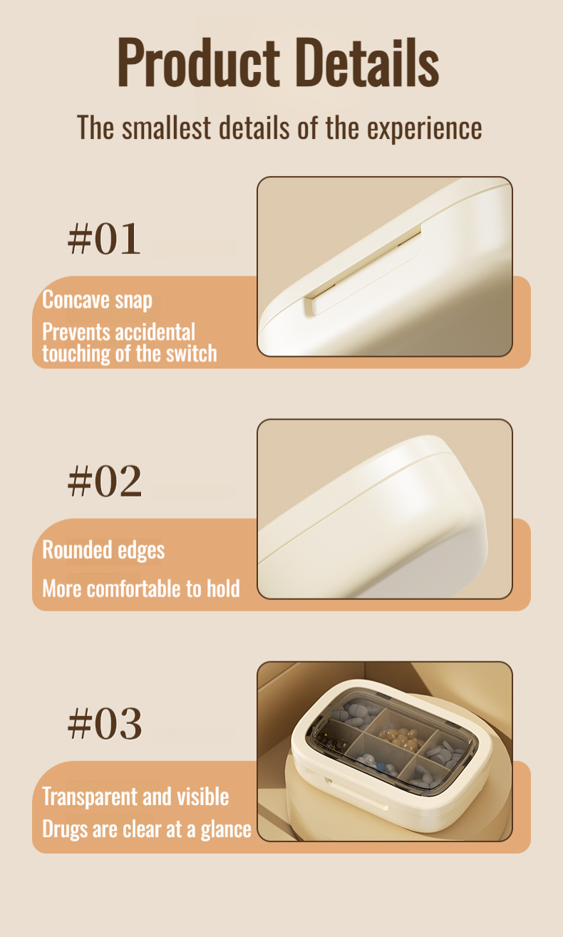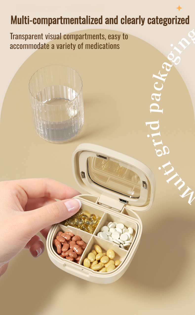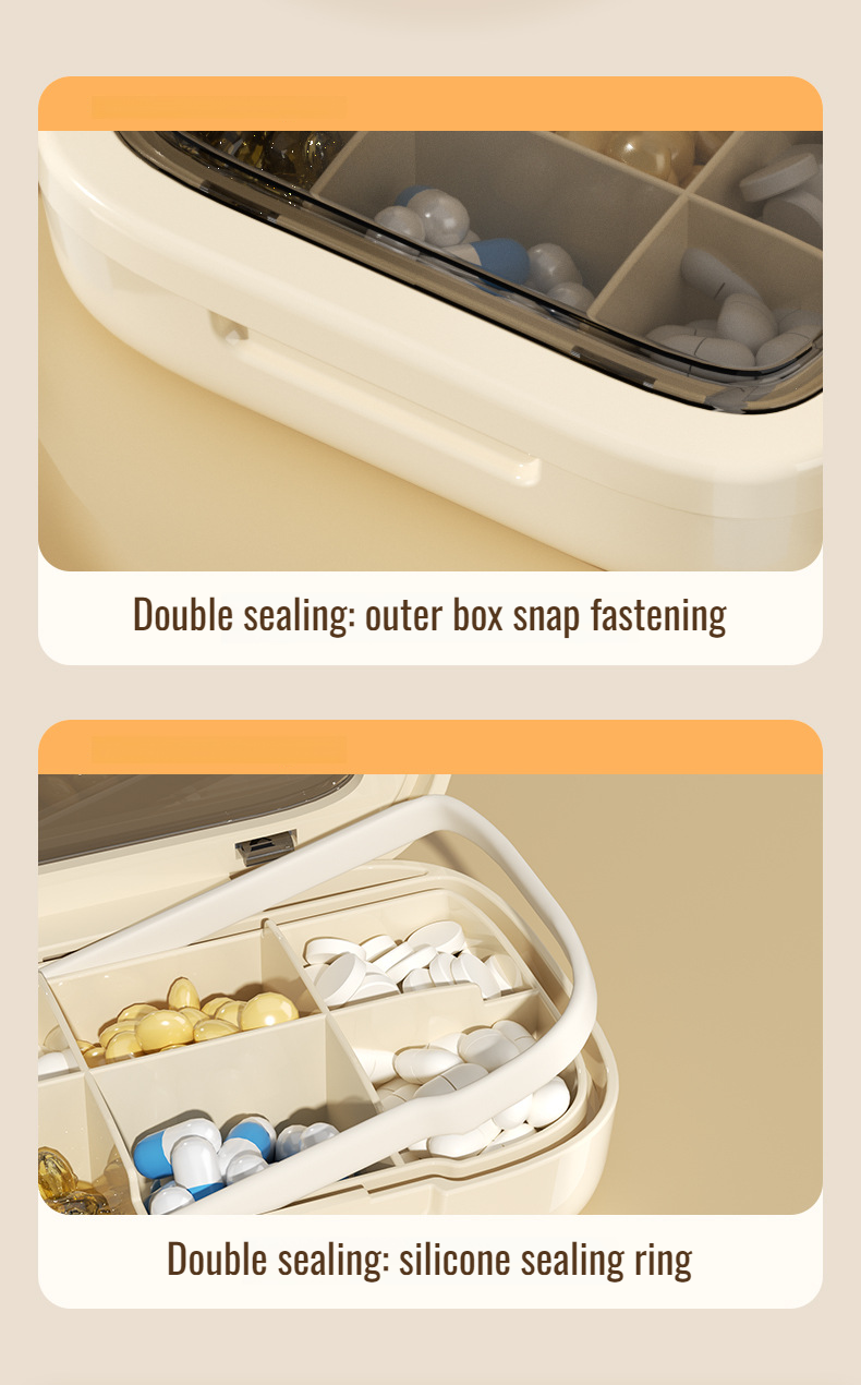 Portable medicine pill box travel packing box with compartments for three meals a day and seven days