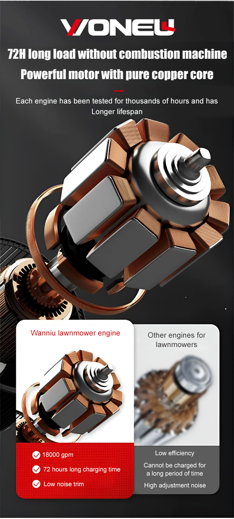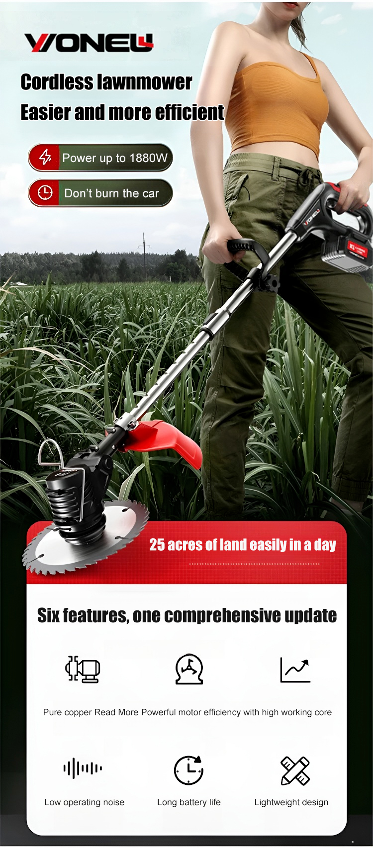High-powered, with a speed of 18000 RPM, trim or mow and save 80% of your time!