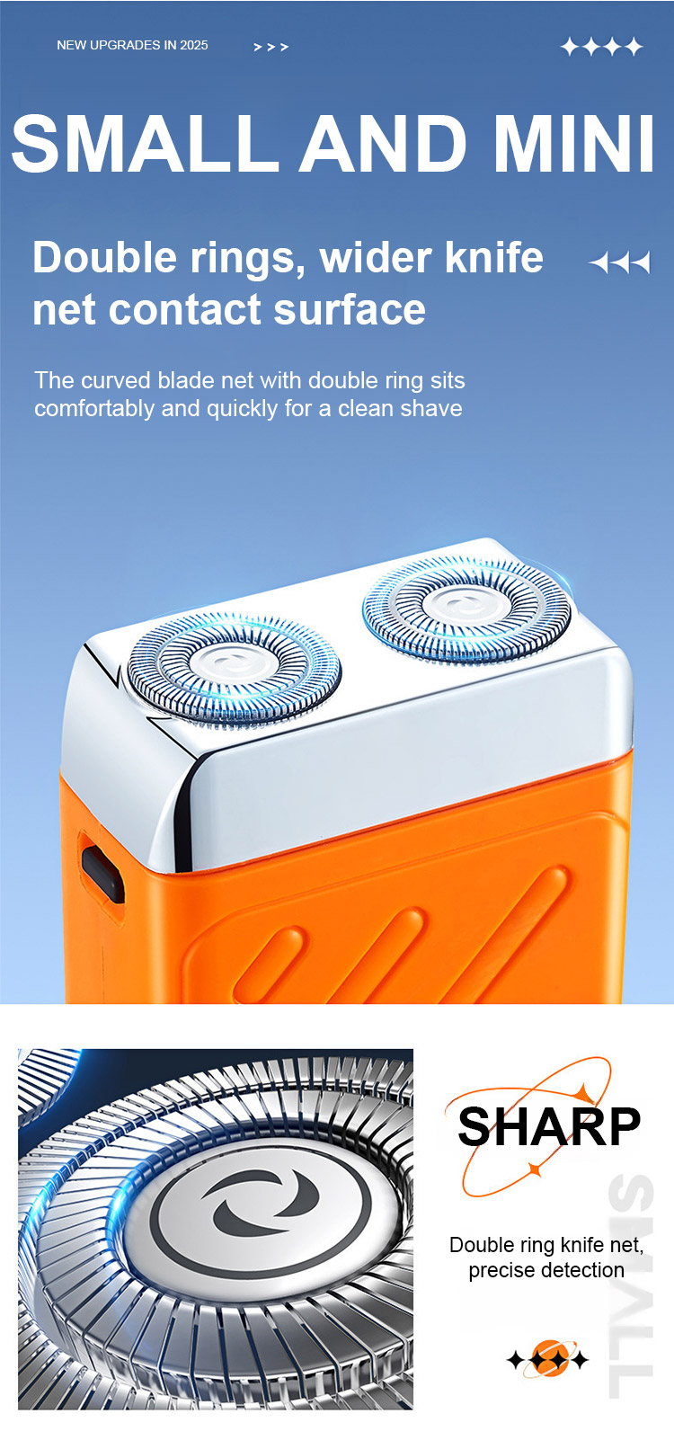 🔒Our dual-head portable electric shaver features a turbo-powered engine, diamond-coated blades, and a fully waterproof design, providing a 60-day battery life for a precise, durable, and efficient shaving experience.