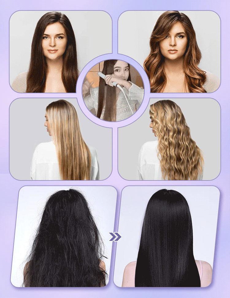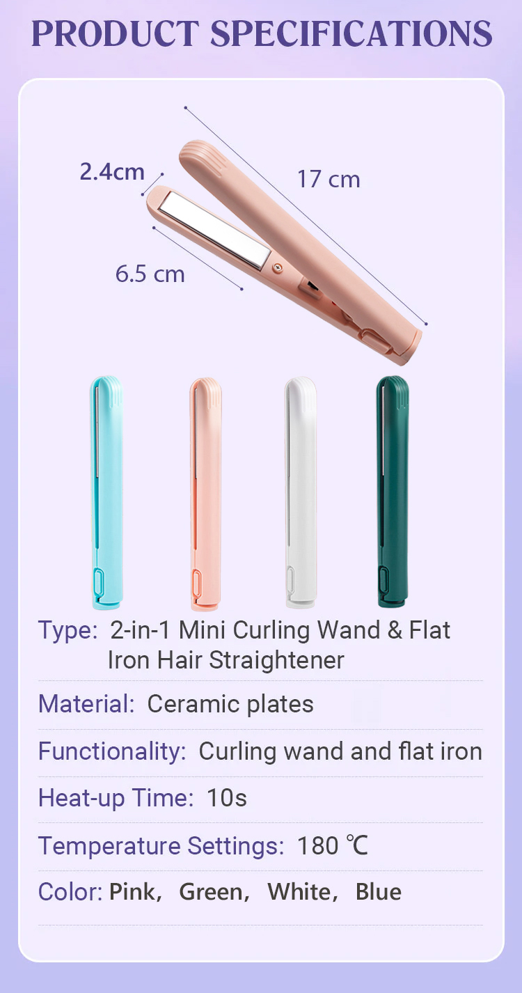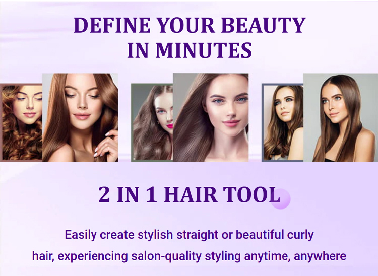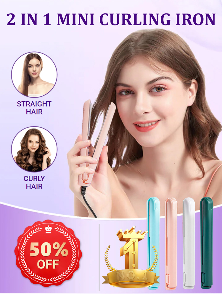 【Portable 2-in-1】 Straightener and curling iron, ceramic glaze won't damage your hair, easily create stylish hairstyles.