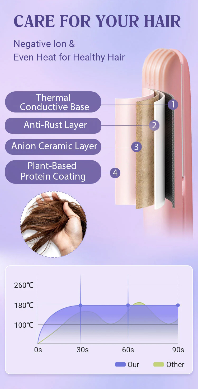 Precise temperature control, safe for use even on dyed or permed hair, without damaging hair quality.