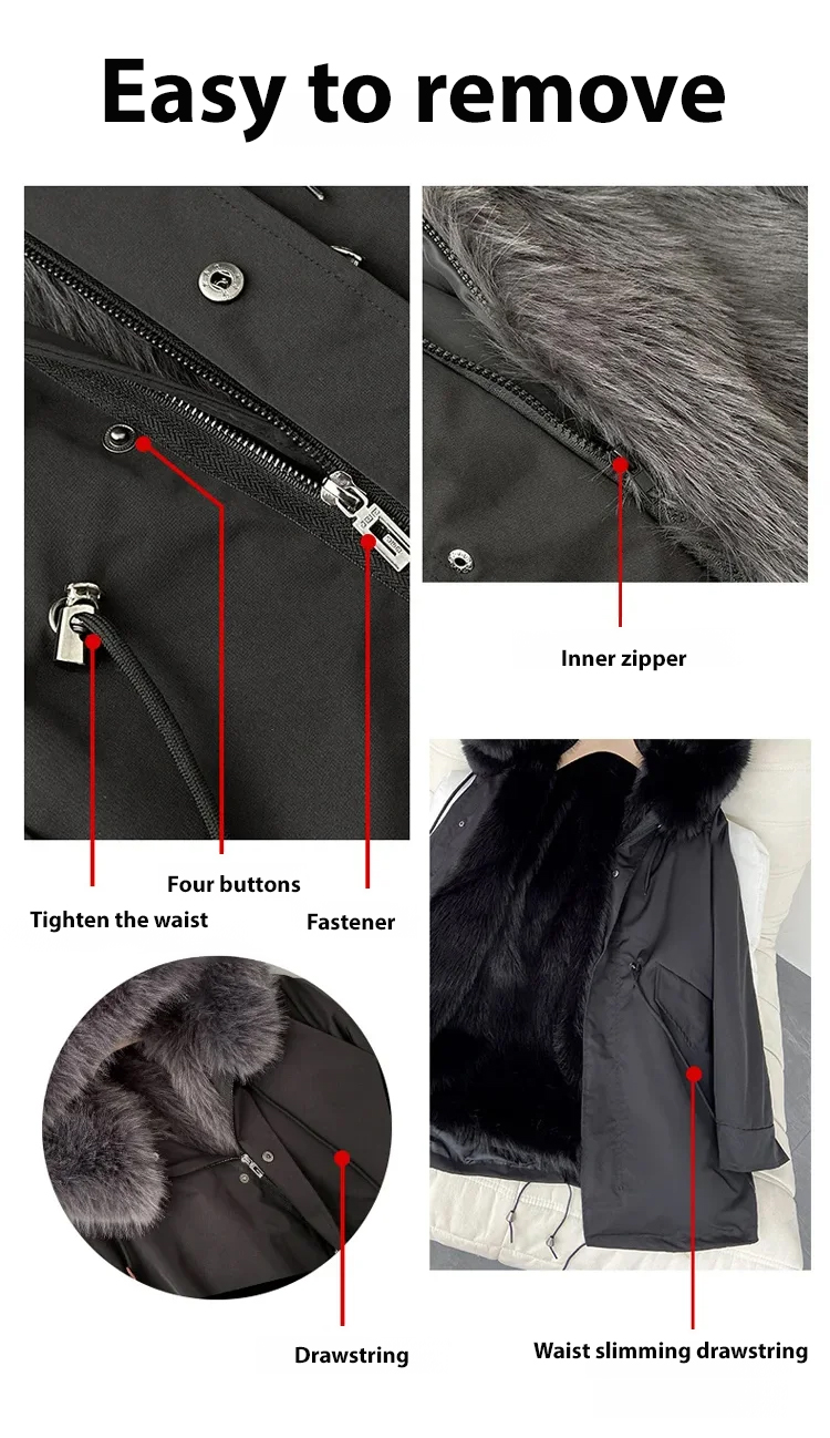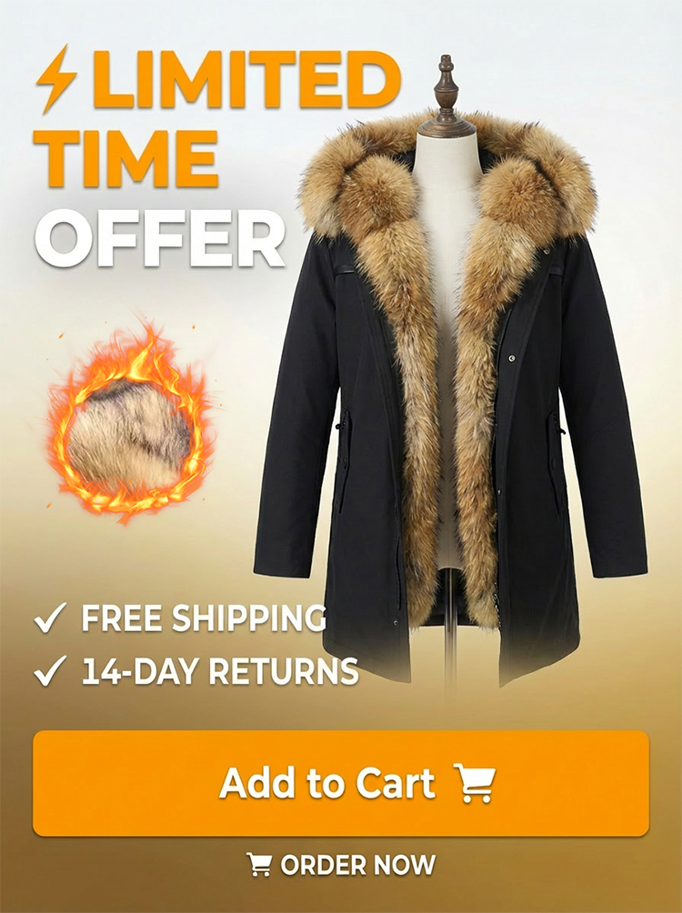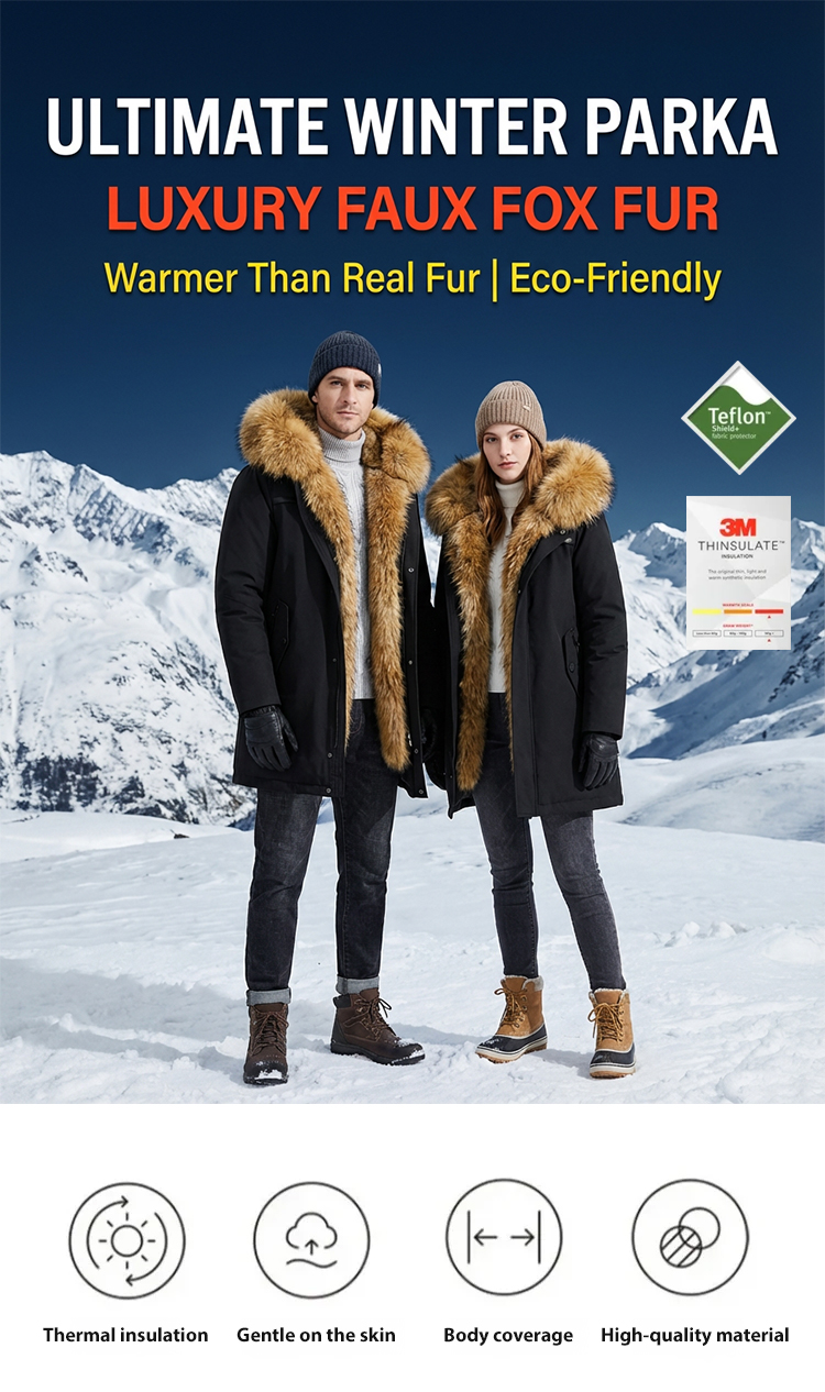 Faux Fur!Cruelty-Free,Luxury Lined Parka!Forget bulky layers. Experience the sleek warmth of premium fox fur. Designed to define your waist while keeping you toasty at -30°C