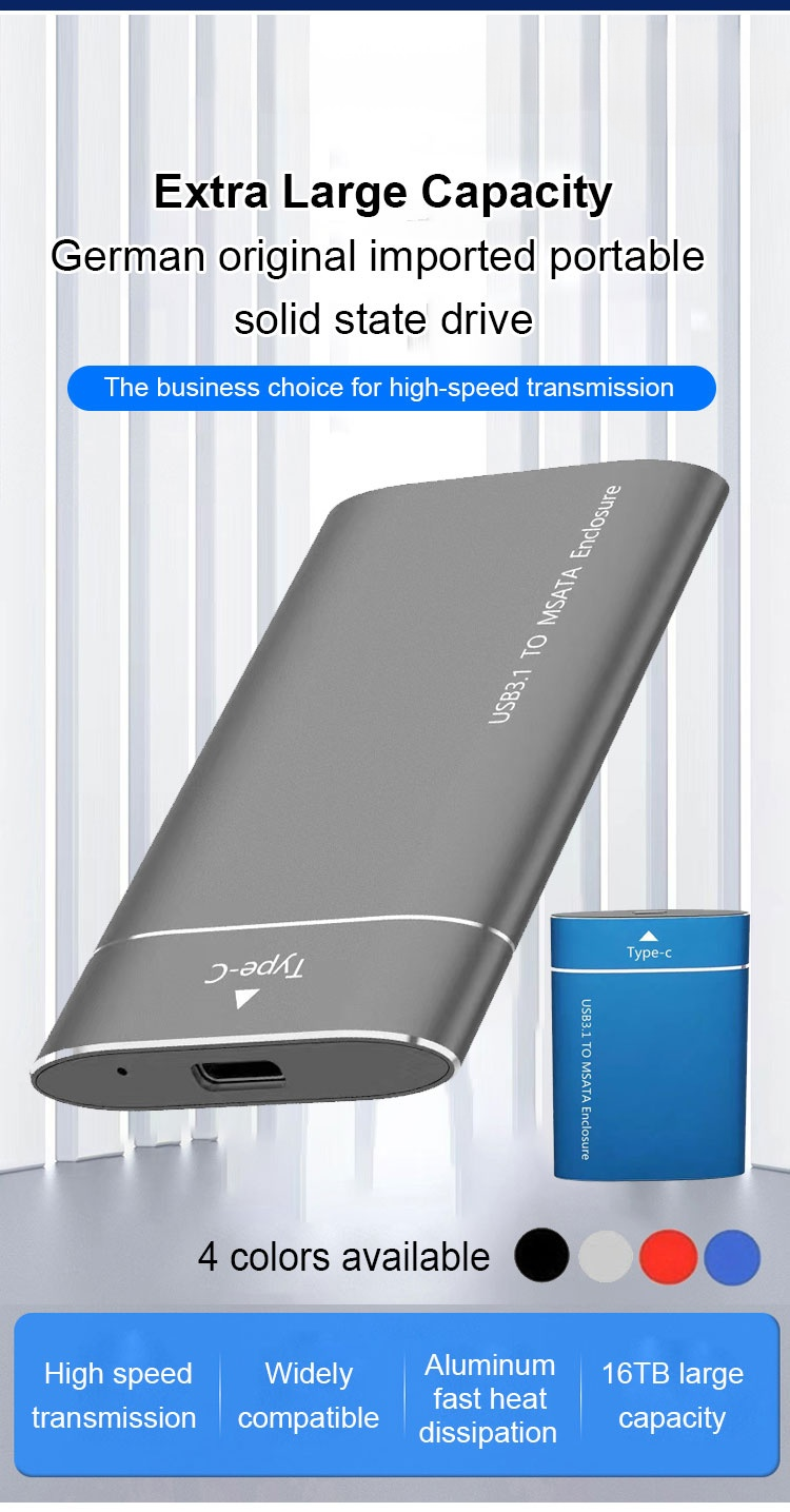 High Speed 16TB Portable External SSD | 950MB/s Data Transfer | IP65 Waterproof Shockproof Storage Device 💾🔒