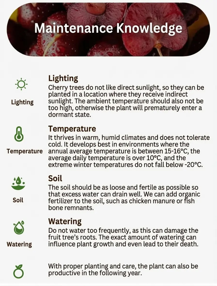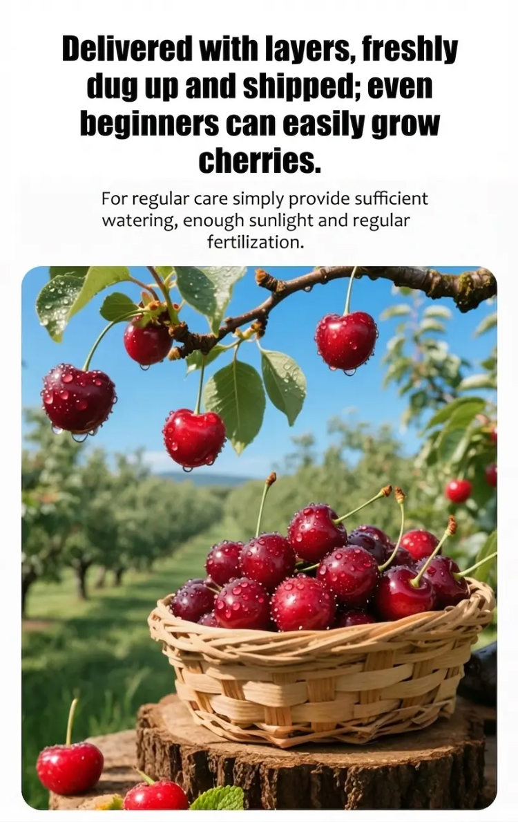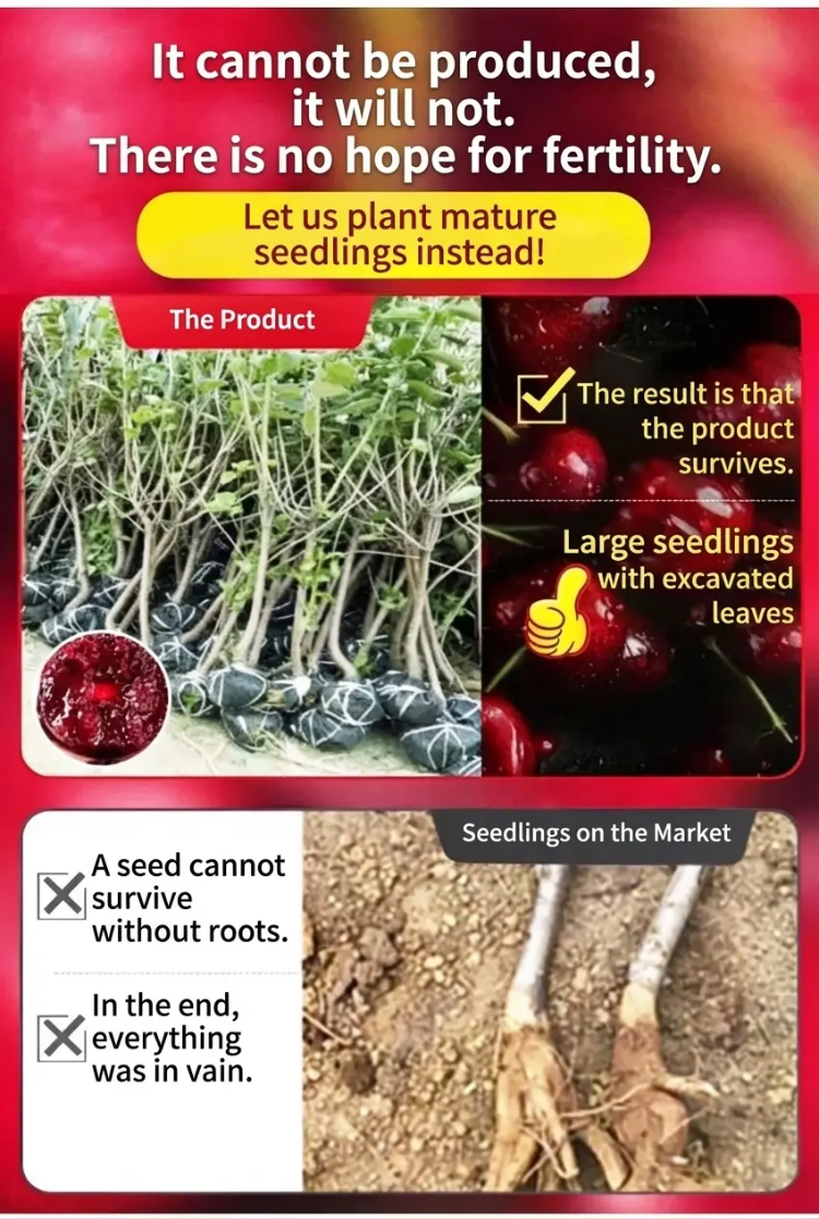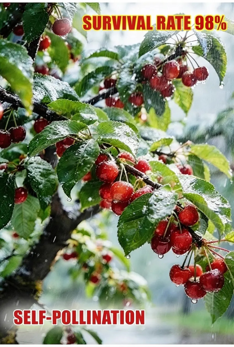 【No fruit, full refund】This cherry is a hybrid of Japan's finest Sato Nishiki variety and Washington's Bing cherry.