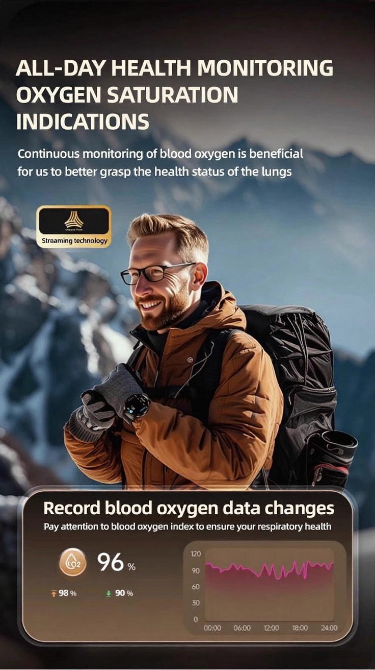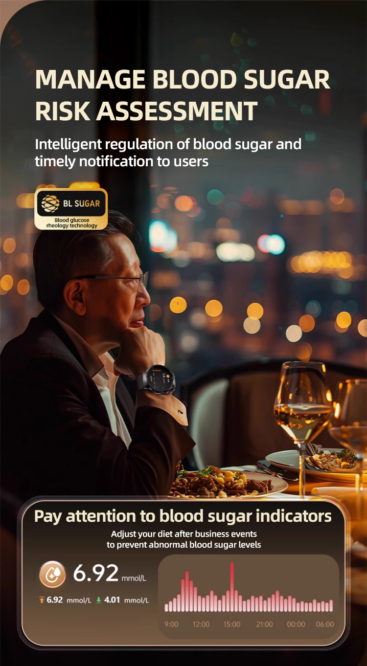 💥⌚It features the most advanced sports and health management system! 💓24 Hour Blood Glucose/Blood Pressure Monitoring Smartwatch with Phone Calls and 99% Accuracy.